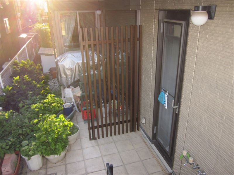 間仕切りは色合いを外観に合せ、角度によって目隠しのようになるため防犯面にも最適です。