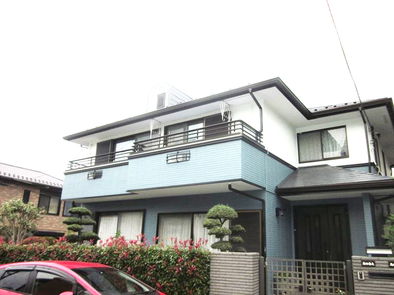 リフォーム前の色合いとは異なる青を主体とした塗装をさせていただきました。今までのご自宅とはイメージがガラリと変わり、落ち着いた雰囲気に仕上げることができました。