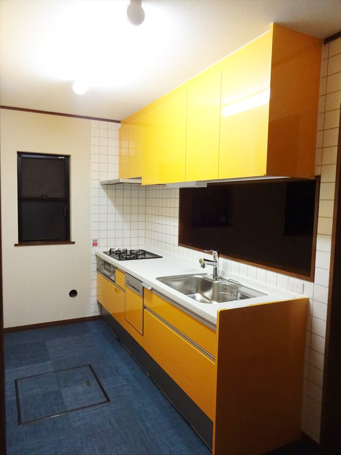 ・キッチンルームの床にはフロアタイルを貼り、空間を一新しました。