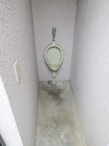 小便器は大きなものに変更。工程上、設置場所のコンクリートを削ったり、壊したりといった作業が必須でしたので、小便器の下に受けの下代を設置しました。