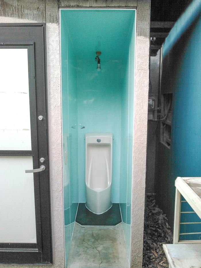 便器:TOTO プッシュボタン小便器 便器オプション:TOTO 小便器下石(ハイドロセラ) 内装材:アイカ アイカタフウォールS(カラーSWN2524ZM) |